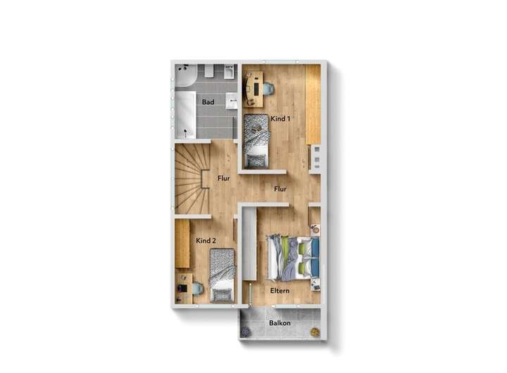 Eingezeichnetes Mobiliar und Einrichtungsgegenstände in den Grundrissvisualisierungen gehören nicht zum Kaufumfang.