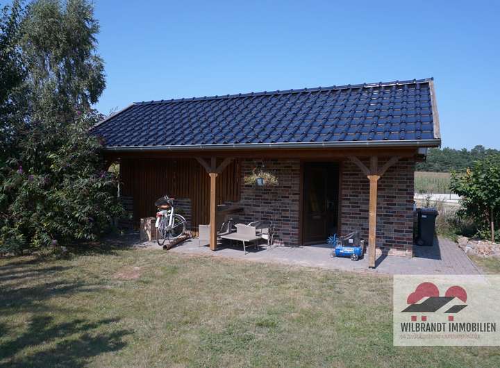 Das ca. 1.402 m² große Grundstück ist geschmackvoll, modern und pflegearm angelegt. Die ca. 35 m² große Terrasse am Haus mit Westausrichtung ist größtenteils überdacht. Eine Besonderheit des Anwesens ist sicher das massive Nebenhaus mit ca. 24 m² Fläche und einem nutzbaren Spitzboden. Es passt optisch in punkto Fassade und Dach ausgezeichnet zum Haupthaus und hat richtig viel Platz zum Einrichten einer Werkstatt sowie als Abstellfläche für Fahrräder und Gartengeräte. Direkt daneben ist die Partyoase mit einem Holzhaus mit Terrasse und einem angrenzenden gepflasterten Bereich für eine Feuerschale.