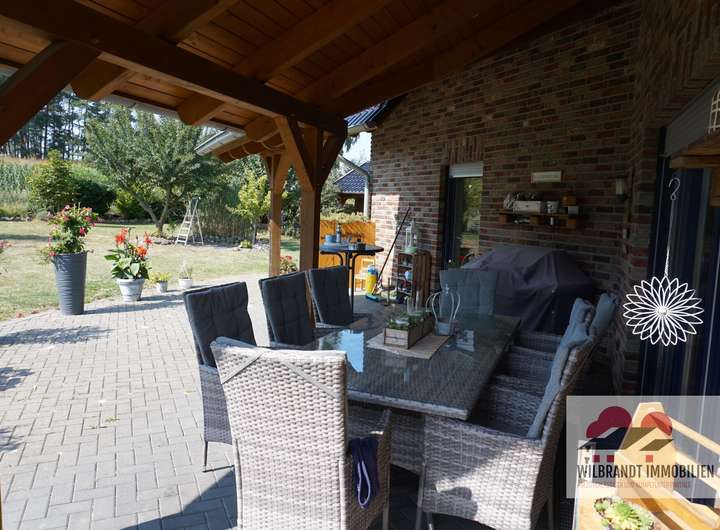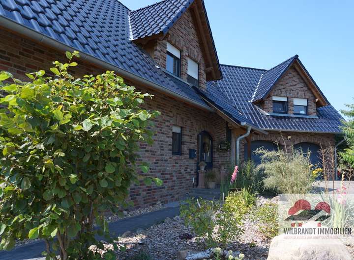 Die Eigentümer haben dieses Idyll mit zwei Wohnebenen, einem ausgebauten Spitzboden und einem beheizten Untergeschoss klug durchdacht, umsichtig geplant und in bester Qualität 2006 errichtet. Am Haus und auf dem Grundstück wurden attraktive Elemente errichtet, beispielsweise eine überdachte Terrasse, ein geräumiges massives Geräte- und Werkstatthaus, ein Partyhäuschen und eine in das Haus integrierte Doppelgarage.