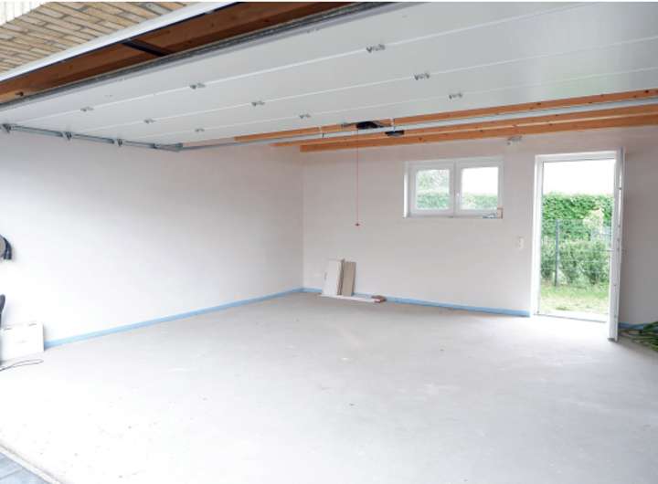 Zu dem Haus gehört eine große massive Doppelgarage mit Flachdach und direkter Verbindung zum Wohnhaus.