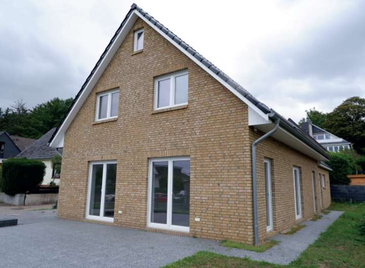 Das Einfamilienhaus wurde ca. 2022 in konventioneller Massivbauweise mit gelbem Verblendmauerwerk und Satteldach erstellt. Das Satteldach ist mit dunklen Tonpfannen eingedeckt.