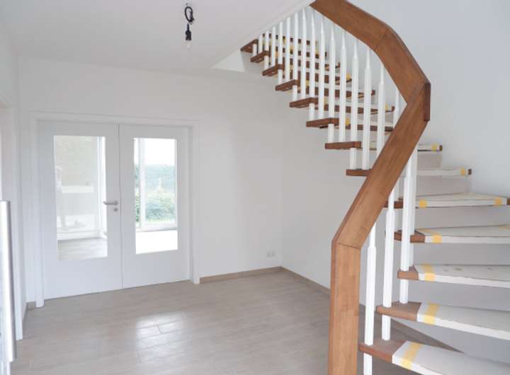 - viertel gewendelte Treppe aus Hartholz, lackiert