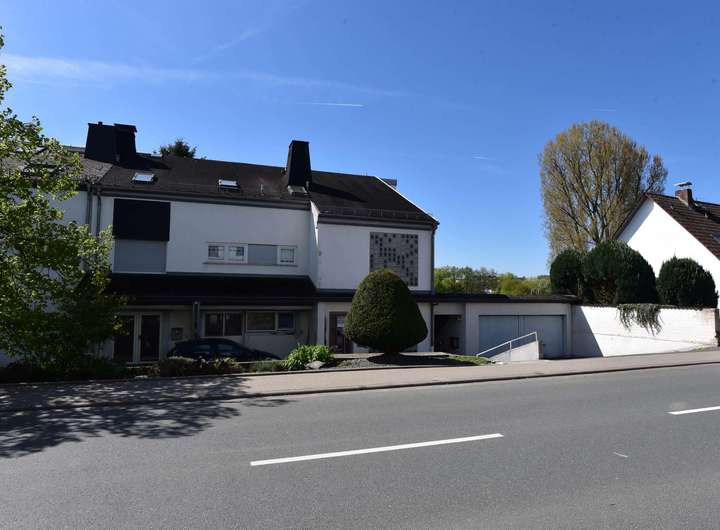 Das 690 m² große Grundstück wurde 1966 mit einem Zweifamilienhaus mit Gewerbeflächen bebaut. Das Wohnhaus ist einseitig angebaut.