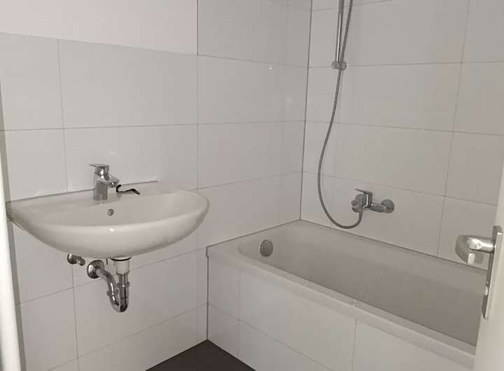 Die separate Küche schafft einen klar abgegrenzten Bereich zum Kochen, eine Einbauküche ist nicht vorhanden und kann individuell nach eigenen Vorstellungen gestaltet werden. Das Badezimmer ist funktional ausgestattet, zudem steht im Haus eine Gemeinschaftswaschküche zur Verfügung. In der Waschküche befinden sich Waschmaschinen, welche gegen eine Gebühr genutzt werden können.