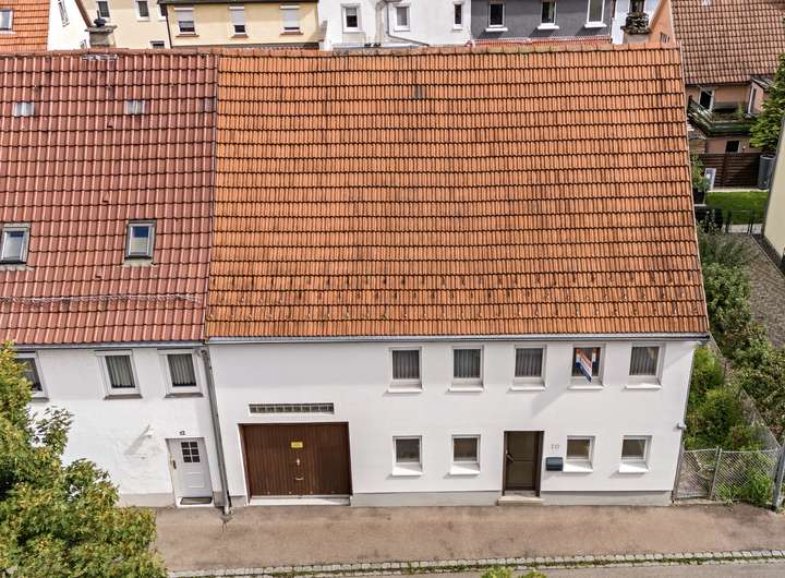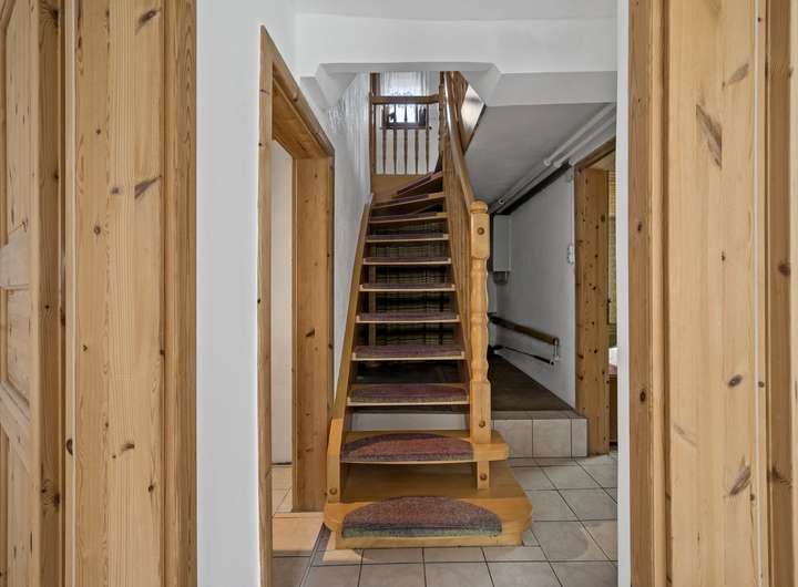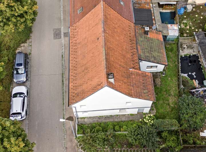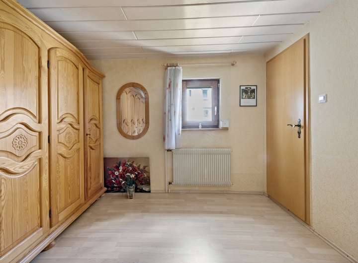 Über die Garage mit angebautem Heizraum/Werkstatt gelangen Sie bequem in das Haus. Zusätzlich erreichen Sie hierüber das bisher nicht ausgebaute Dachgeschoss.