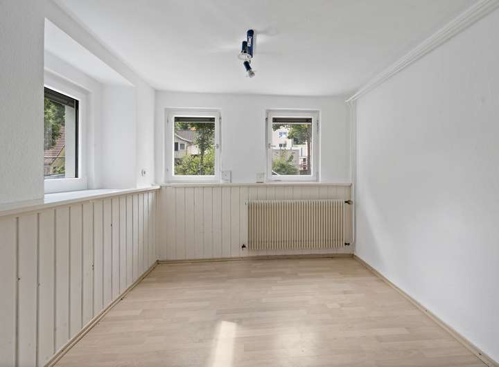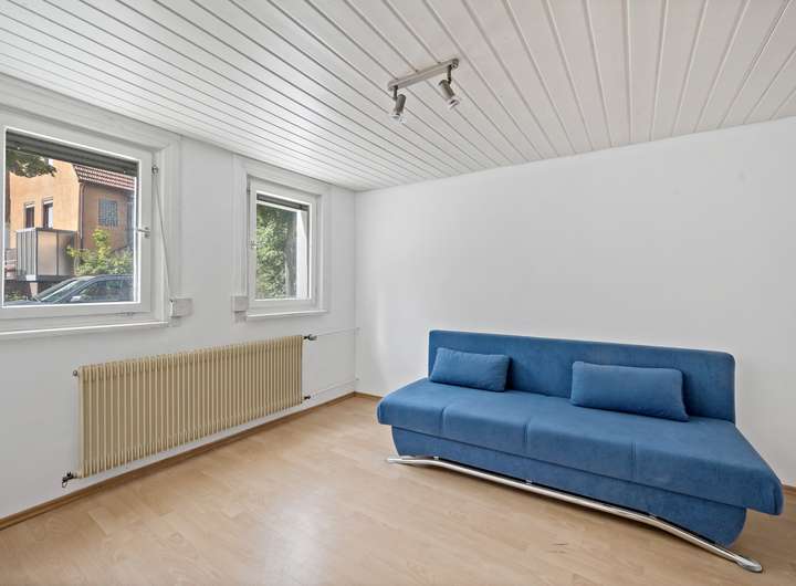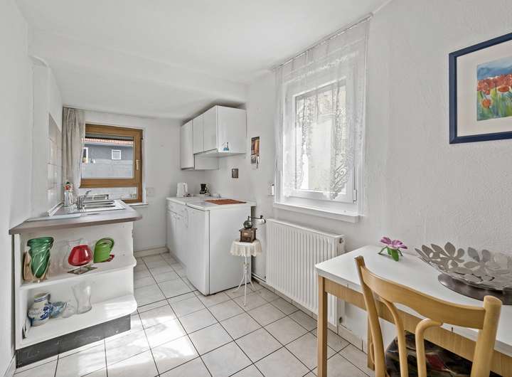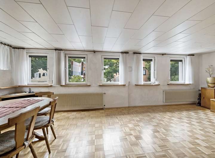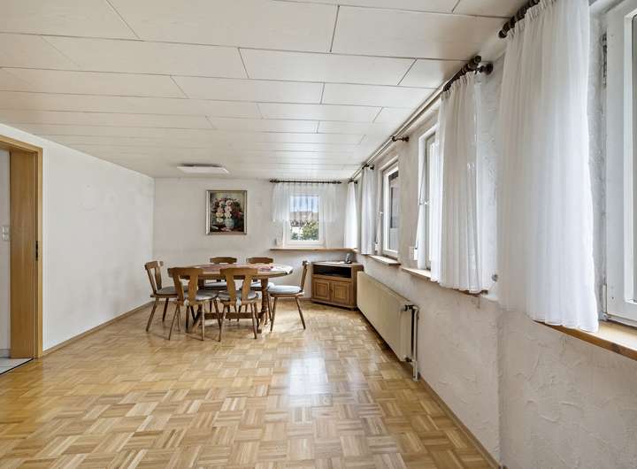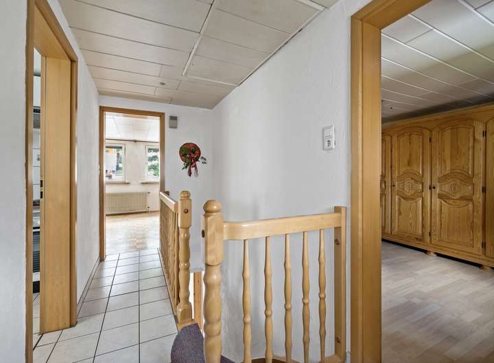 Das Obergeschoss bietet Ihnen genügend Platz für ein großes Wohn- und Esszimmer, ein Schlafzimmer, die Küche und ein Gäste-WC.