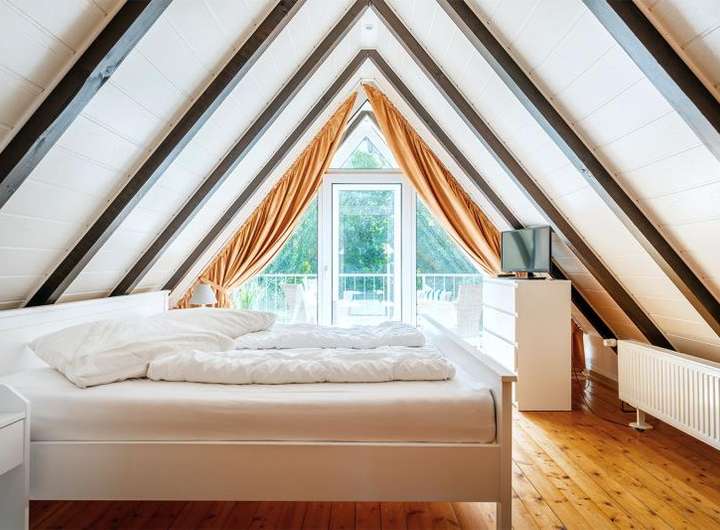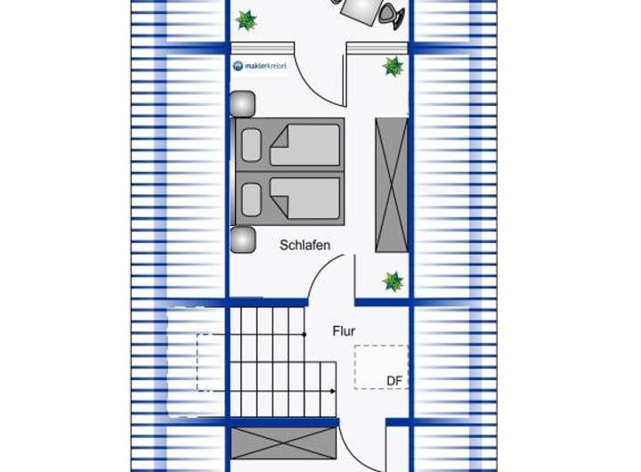 Im Dachgeschoss befinden sich zwei Schlafzimmer, eines davon mit einer verglasten Loggia und Blick in den Garten. Das vollständige Raumprogramm entnehmen Sie bitte den beigefügten Grundriss-Skizzen.