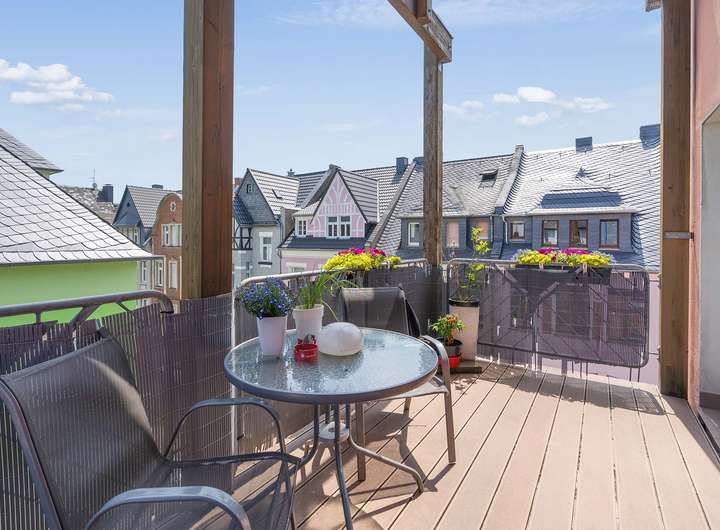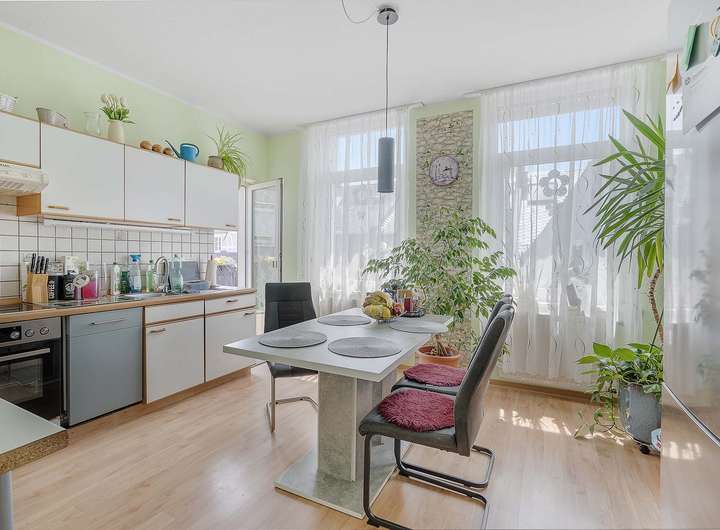 Der Altbaucharme sorgt für ein schönes Wohngefühl mit hohen Decken und die Aussicht in die Umgebung ist ebenfalls sehr attraktiv.