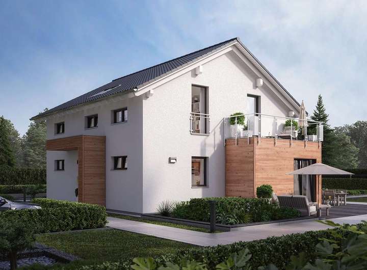 Willkommen in einem Zuhause, das mitdenkt, mitfühlt und sich jedem Moment Ihres Lebens anpasst. Hier erwartet Sie modernes Wohnen voller Licht, Raum und Möglichkeiten - perfekt für Familien, Paare oder alle, die ein Zuhause suchen, das mehr ist als nur vier Wände. Auf großzügigen ca. 200 m² Wohnfläche verbindet dieses Haus klassische Architektur mit moderner Offenheit. Dank bodentiefer Verglasungen auf allen Seiten flutet natürliches Licht jeden Winkel und schafft eine warme, einladende Atmosphäre - selbst an grauen Tagen. An sonnigen Nachmittagen werden die breiten Glasschiebetüren zum Tor in die Natur: Der großzügige Wohn-, Ess- und Küchenbereich öffnet sich direkt ins Grüne und verwandelt sich mühelos in eine sonnige Terrasse, auf der Sie entspannen, essen oder Zeit mit Freunden und Familie verbringen können. Im Dachgeschoss setzt sich das besondere Wohngefühl fort. Ein großzügiger Flur bietet Raum zum Lesen, Entspannen oder einfach zum Innehalten - ein Ort zum Abschalten, auch an kalten Wintertagen. Der eigenständige Elternbereich überzeugt mit einer begehbaren Ankleide und einem stilvollen Wohlfühlbad, das den Alltag in kleine Wellnessmomente verwandelt. Zwei helle Kinderzimmer sowie ein separates Duschbad machen das Obergeschoss zum perfekten Rückzugsort für die ganze Familie - ideal für fröhliches Familienleben, individuelle Hobbys oder ruhige Stunden. Dieses Zuhause ist offen, wohnlich und individuell - ein Haus, das sich allen Jahreszeiten und jeder Lebensphase anpasst. Hier gestalten Sie Ihr Leben nach Ihren eigenen Vorstellungen - mit Platz für Gemeinschaft, Privatsphäre und Ihre persönlichen Träume. Ihre Highlights auf einen Blick: Ca. 200 m² Wohnfläche - großzügig, hell und flexibel Bodentiefe Fenster für lichtdurchflutete Räume und ein offenes Wohngefühl Breite Glasschiebetüren verbinden Innenraum und Natur Großzügiger Wohn-, Ess- und Küchenbereich als Herzstück des Hauses Großer Flur im Obergeschoss als Rückzugs- oder Lesezone Elternbereich mit begehbarer Ankleide und stilvollem Wohlfühlbad Zwei helle Kinderzimmer plus separates Duschbad für Familienfreundlichkeit Perfekt für alle Jahreszeiten und jede Lebensphase Ein Zuhause, das modernes Wohnen, lichtdurchflutete Räume und naturnahe Architektur perfekt verbindet. Hier beginnt Ihr neues Kapitel voller Wärme, Stil und Lebensfreude.