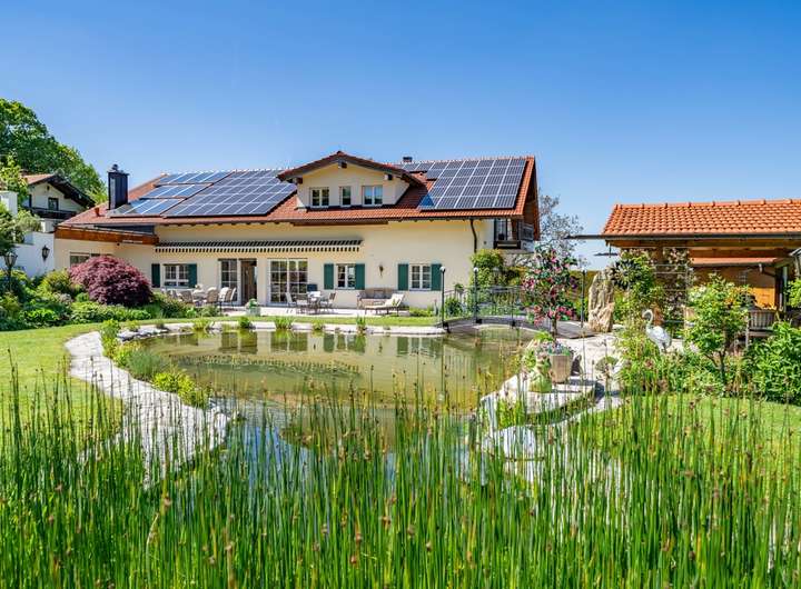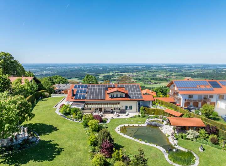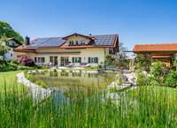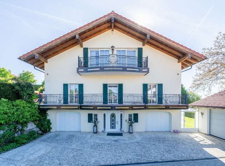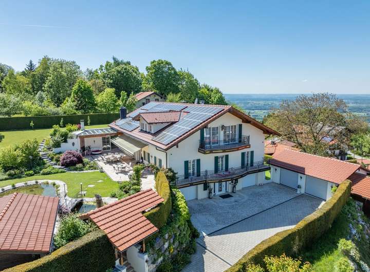 Inmitten einer der reizvollsten Landschaften der Chiemgauer Alpen, am malerischen Samerberg, präsentiert sich dieses beeindruckende Anwesen als einzigartiger Rückzugsort für höchste Wohnansprüche. Die Lage zählt zweifellos zu den schönsten der gesamten Region - mit freiem Blick auf die majestätischen Alpenkette und den glitzernden Simsee. Die unvergleichliche Naturkulisse, die elegante Ausstattung und die vollkommene Ruhe verleihen diesem Anwesen eine seltene Qualität. Ein eigenständiges, 1.788m² großes Baugrundstück - derzeit als parkartiger Garten des 2.120m² großen, bebauten Grundstückes genutzt - kann optional zusätzlich erworben werden eröffnet durch großzügiges Baurecht vielfältige Perspektiven für die Zukunft und macht diese Liegenschaft zu einer Rarität.