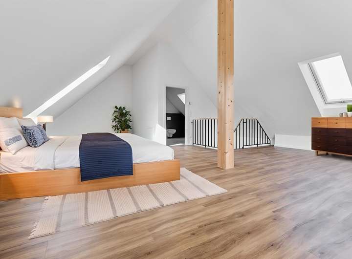 Im Obergeschoss erwarten Sie drei großzügige Schlafräume und ein stilvolles Badezimmer mit Badewanne, Dusche und WC. Das ausgebaute Dachstudio im Dachgeschoss bietet zusätzliche Flexibilität – sei es als Arbeitszimmer oder zusätzlicher Schlafbereich. Ein weiteres Badezimmer mit Dusche und WC im Dachgeschoss sorgt für zusätzlichen Komfort.