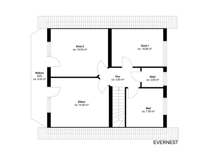 Hier erwarten Sie ein Elternschlafzimmer, zwei Kinderzimmer, ein Tageslichtbad mit Badewanne sowie ein praktischer Abstellraum. Ein besonderes Highlight ist der große Balkon, den Sie sowohl vom Schlafzimmer als auch von einem Kinderzimmer erreichen – mit idyllischem Ausblick ins Grüne.
