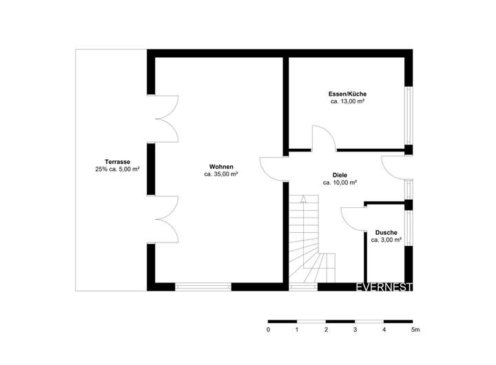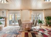 Der Mittelpunkt des Hauses ist das großzügige, lichtdurchflutete Wohnzimmer mit direktem Zugang zum Wintergarten. Ob entspannte Abende im Sommer oder gemütliche Stunden im Winter – hier lässt es sich das ganze Jahr über genießen. Eine separate Küche sowie ein Badezimmer mit Dusche runden das Raumangebot auf dieser Ebene ab.