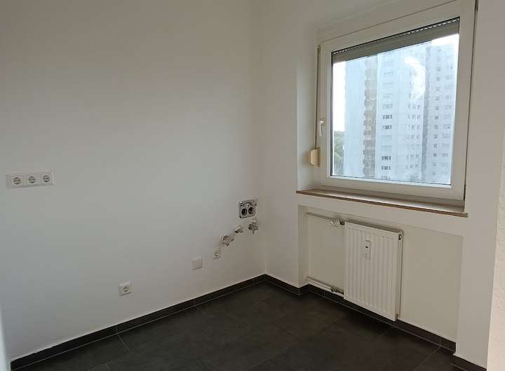 Die separate Küche ist nicht mit einer Einbauküche ausgestattet und kann individuell nach eigenen Vorstellungen gestaltet werden. Im Haus steht ein gemeinschaftlicher Waschraum zur Verfügung.