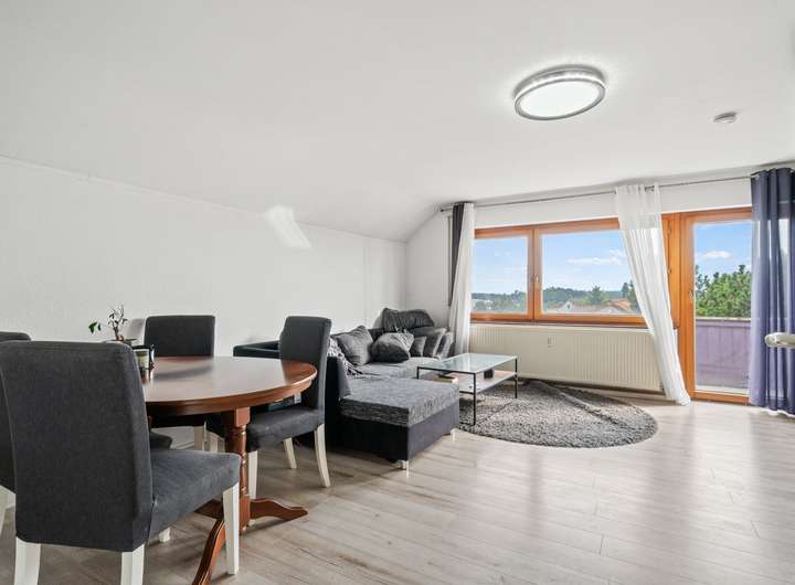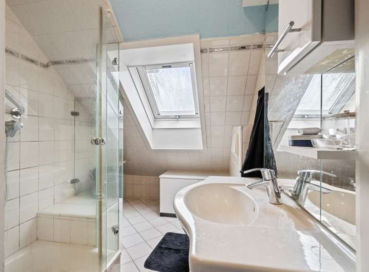 Das Dachgeschoss empfängt Sie mit zwei Zimmern und einer Wohnfläche von ca. 67 m² die Dachgauben schaffen zusätzlichen Raum und lichtdurchflutete Atmosphären.