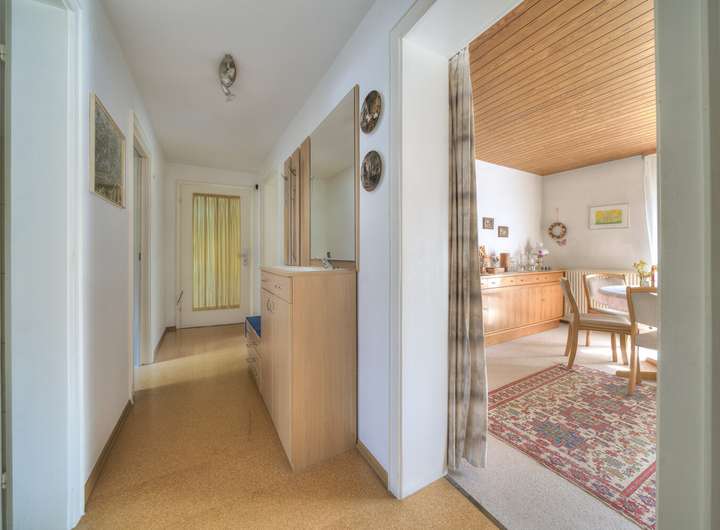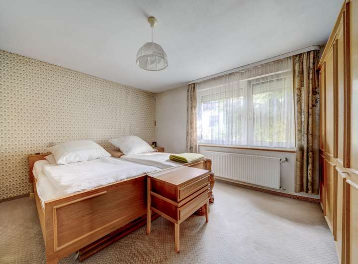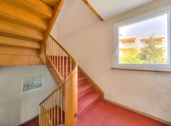 Die drei Wohneinheiten sind über das zentrale Treppenhaus begehbar und verfügen jeweils über gut zugeschnittene Grundrisse. Insgesamt stehen zehn Zimmer zur Verfügung, darunter sechs Schlafräume, die flexibel genutzt werden können. Drei Badezimmer sorgen für genügend Komfort, auch wenn mehrere Personen im Haus leben. Die Räumlichkeiten sind freundlich und bieten dank großer Fenster viel Tageslicht. Die Ausstattung ist als normal zu bewerten und entspricht dem Baujahr des Hauses. Ein Großteil der Räume ist renovierungsbedürftig – dies eröffnet aber auch gleichzeitig die Möglichkeit, das Haus nach den eigenen Vorstellungen zu gestalten und zu modernisieren.