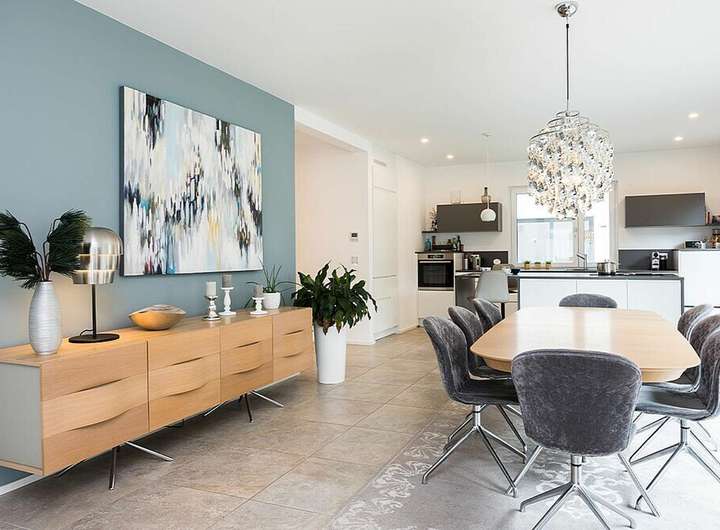 Das durchdachte Raumkonzept überzeugt mit offenem Wohn-/Essbereich im Erdgeschoss, hellen Kinderzimmern und großzügigem Elternschlafzimmer im Obergeschoss. Ein optionaler Keller schafft zusätzlichen Platz für Technik, Stauraum oder ein Homeoffice.