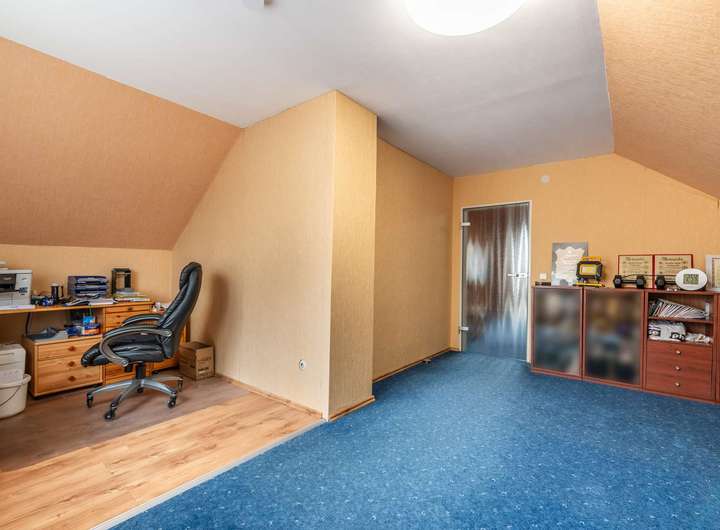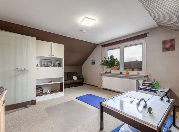 Das ausgebaute Dachgeschoss bietet zusätzlichen Wohnraum, der sich flexibel an Ihre Bedürfnisse anpassen lässt – ob als Kinderzimmer, Arbeitsbereich oder Rückzugsort.