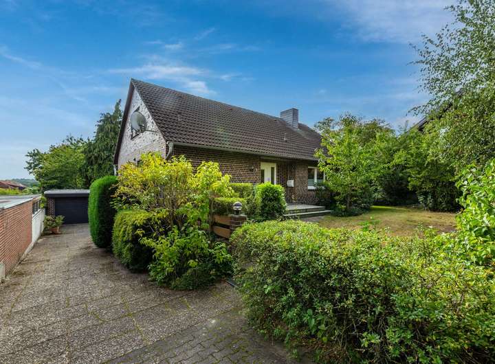Die lange Einfahrt mit Garage bietet ausreichend Platz für Fahrzeuge. Der praktisch angelegte Garten schenkt Ihnen viel Grün und einen weiten Blick – ein perfekter Ort, an dem Kinder spielen, Sie Gemüse anbauen oder einfach die Natur genießen können.