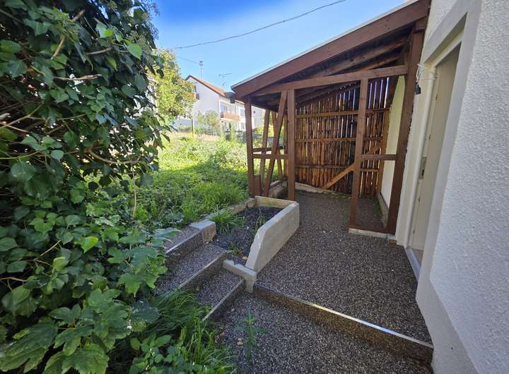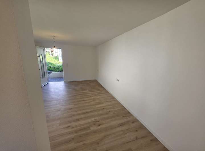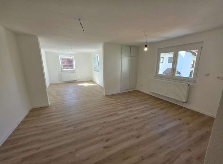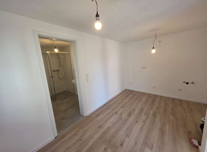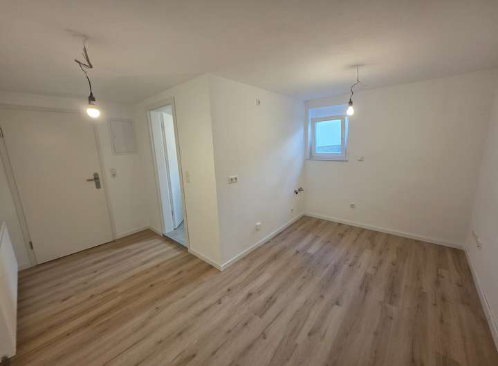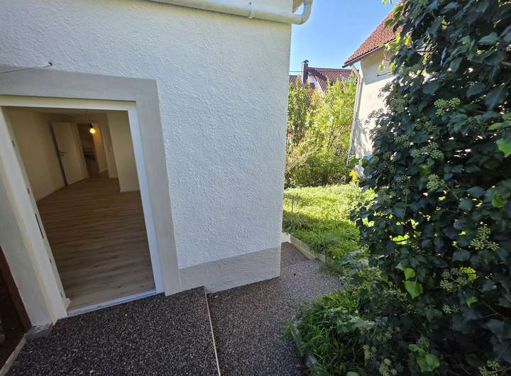 Im Erdgeschoss befindet sich eine 1 Zimmerwohnung mit Wohnküche und Bad .