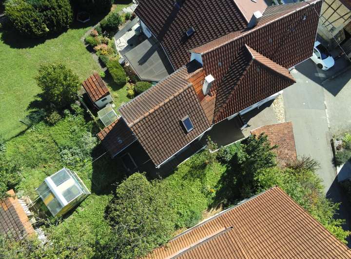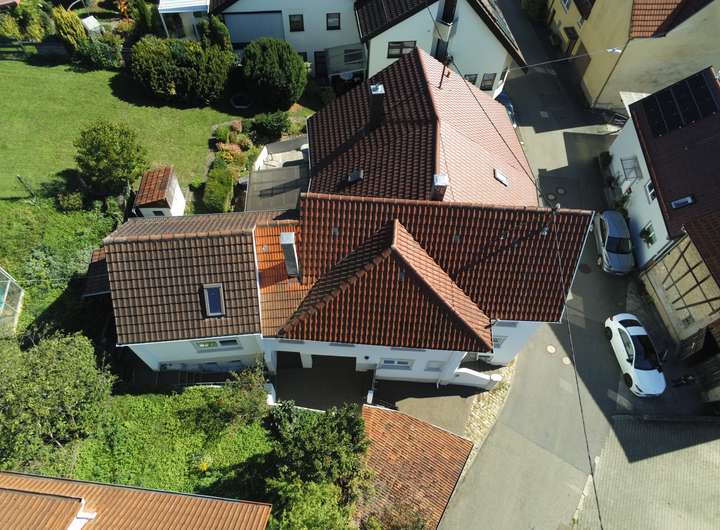 im Obergeschoss und Dachgeschoss befindet sich eine großzügige 4,5 Zimmer Wohnung mit separatem Eingang.