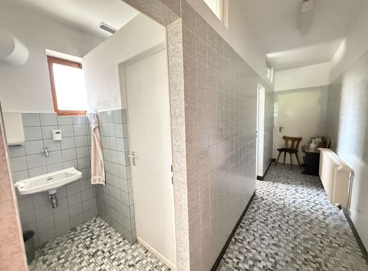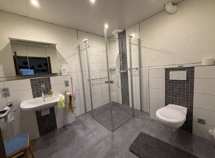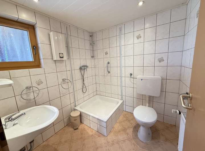 - Obergeschoss: ca. 97 m² große 4-Zimmer-Wohnung mit Küche, Bad, Gäste-WC und Balkon. 5 St. Gästezimmer mit Bad.