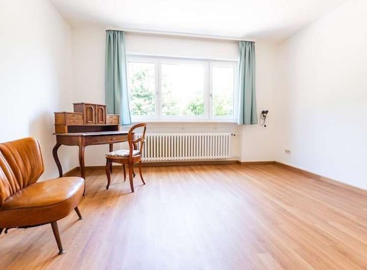 Im Erdgeschoss befindet sich eine helle, freundliche 3-Zimmer-Wohnung, die über den gemeinsamen Hauseingang zugänglich ist. Von hier aus führt der Weg rechts in die abgeschlossene Einheit, die sich hervorragend als Einliegerwohnung eignet – etwa für Familienmitglieder oder zur Vermietung. Diese Wohneinheit bietet ein gemütliches Wohnzimmer mit massivem Eichenholzparkett, ein Schlafzimmer, ein weiteres Zimmer (z. B. als Büro oder Kinderzimmer nutzbar), eine Küche mit direktem Zugang zur großzügigen Südterrasse sowie ein hochwertig modernisiertes Badezimmer. Dieses wurde 2022 umfassend renoviert und ist mit stilvollen Materialien sowie einer bodengleichen, barrierefreien Dusche ausgestattet – ideal auch für altersgerechtes Wohnen. Die Wohnung punktet durch viel Tageslicht, angenehme Raumhöhen und eine schöne Privatsphäre. Ideal für die Vermietung oder als Kombination aus Wohnen und Arbeiten im eigenen Haus.