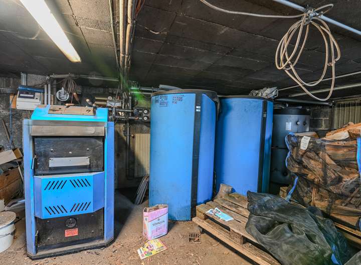 Moderne Holz-Zentralheizung mit Backup-Gasheizung, automatisch gesteuert