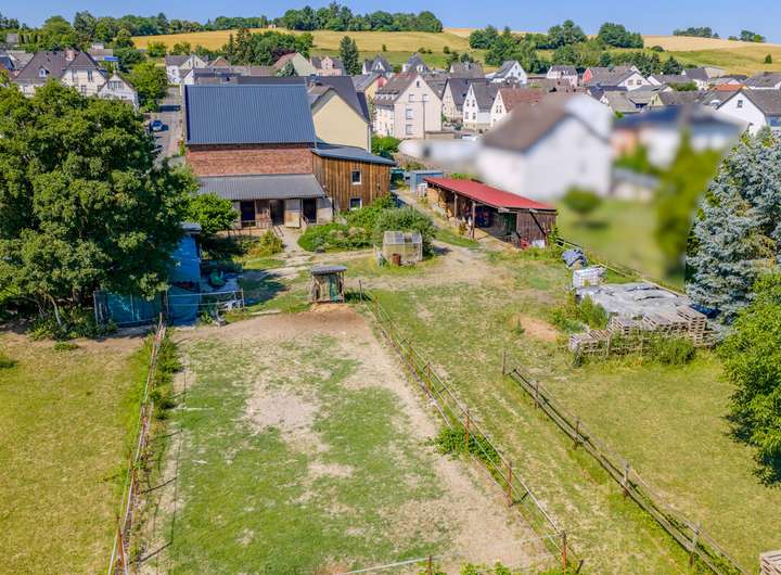 Das Anwesen befindet sich in ruhiger Lage am Feldrand von 65629 Niederneisen, einer familienfreundlichen Gemeinde im Rhein-Lahn-Kreis. Die Umgebung ist geprägt von Natur, Wiesen und kleinen Höfen – ideal für Reitliebhaber, Selbstversorger oder Ruhesuchende.