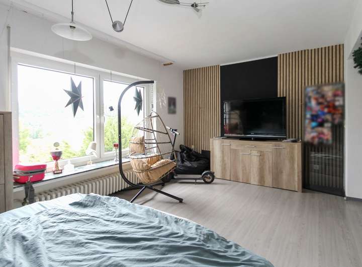 Das Erdgeschoss empfängt Sie mit einem hellen Wohn- Essbereich mit angrenzendem Schlafzimmer. Die Küchenanschlüsse sind in der Etage vorhanden - die Räumlichkeiten werden jedoch aktuell zu Wohnzwecken genutzt, da sich die Einbauküche im Untergeschoss befindet. Im Obergeschoss stehen ein Schlafzimmer, ein Kinderzimmer sowie ein Tageslichtbad mit Wanne zur Verfügung. Das Dachgeschoss wurde in den 80er Jahren ausgebaut und bietet zwei weitere Zimmer, die flexibel genutzt werden können – sei es als Arbeitszimmer, Gästezimmer oder zusätzliche Kinderzimmer.