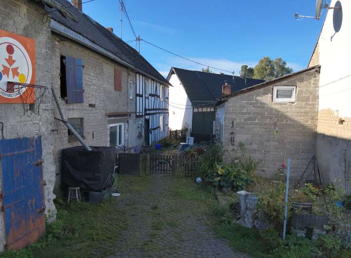 Das hier angebotene Anwesen wurde um 1900 errichtet und befindet sich auf einem ca. 4.350 m² großen Grundstück. Es umfasst ein Einfamilienhaus in Fachwerkbauweise, mehrere Nebengebäude sowie ein separates Apartment.