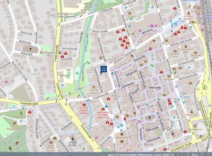 Aalen - zentral im Herzen von Ostwürttemberg, das Tor zur Schwäbischen Alb, nur eine Bahn- oder Autostunde zur Landeshauptstadt Stuttgart. Eine gute Anbindung an die A7 und die A8 verbinden Aalen mit Ulm wie auch Würzburg, Augsburg und München. Die zentrale Lage sowie beste Nahversorgung und Verkehrsanbindung kennzeichnen dieses Objekt. Alle Einrichtungen des täglichen Bedarfs sind bequem zu Fuß erreichbar. In näherer Umgebung finden Sie verschiedene Restaurants, Cafés, Ärzte, Supermärkte und vieles mehr.