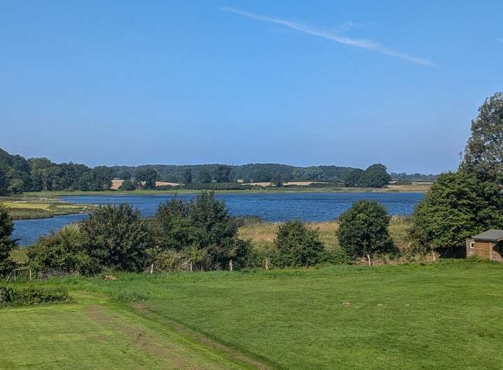 Auf einer Wohnfläche von ca. 114 m² präsentiert sich das Erdgeschoss mit einem durchdachten Grundriss. Das Herzstück ist das großzügige Wohn- und Esszimmer, welches durch seinen direkten Zu-gang zur Terrasse sowie den traumhaften Blick in den Garten bis hin zur Schlei besticht. Die helle Küche bietet ausreichend Platz und fügt sich harmonisch in den Wohnbereich ein. Darüber hinaus verfügt das Erdgeschoss über ein geräumiges Schlafzimmer, ein Gäste-WC sowie ein Tageslichtbad mit Dusche und Badewanne. Ein weiteres Zimmer mit eigenem Tageslichtbad en Suite erweitert die Nutzungsmöglichkeiten und eignet sich ideal als Gästezimmer oder Büro.