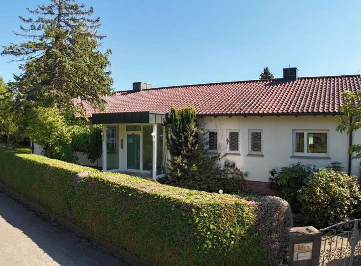 In aussichtsreicher Lage mit Blick auf die Burgruine Flochberg und den Ipf präsentiert sich dieser Einfamilienhaus-Bungalow, erbaut im Bauhausstil. Das Anwesen besticht durch seine zeitgemäße Architektur und Wohnraumgestaltung sowie durch ein zeitloses Konzept.