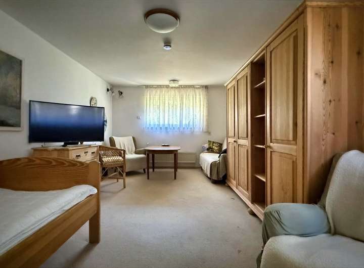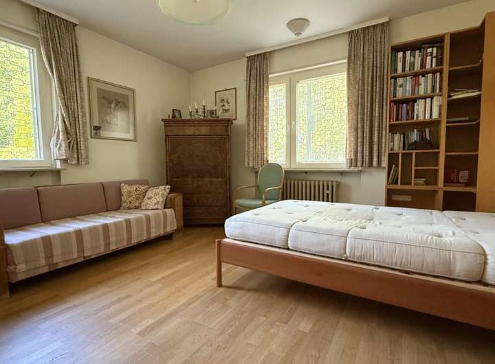 Das Wohnraumangebot setzt sich im Gartengeschoss mit zwei individuell nutzbaren Zimmern, einer kleinen Küche sowie einem Duschbad fort. Dieser Bereich kann als Einliegerwohnung mit separatem Eingang genutzt werden. Außerdem befinden sich auf dieser Ebene diverse Keller- und Technikräume sowie ein Hauswirtschaftsraum.