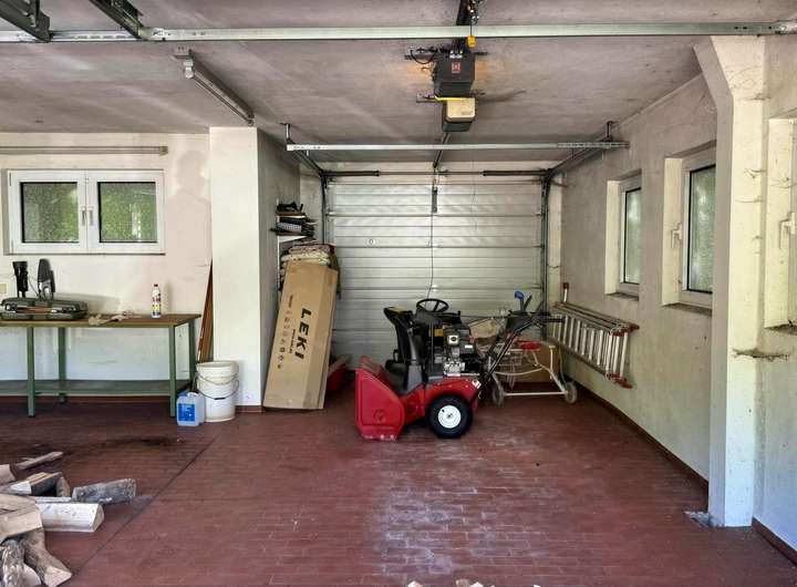 Zwei komfortable Doppelgaragen, eine mit direktem Zugang zum Garten, bieten Platz für sämtliche Fahrzeuge und Gartengeräte. Eine Garage ist sogar unterkellert.