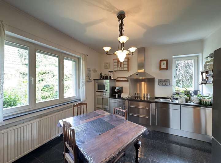 In einer ruhigen Stadtgegend von Ibbenbüren in Hanglage befindet sich dieses schöne und sehr gepflegte Einfamilienhaus aus dem Jahr 1955. Auf einem großzügigen Grundstück von 918 m² bietet das Haus mit ca. 152 m² Wohnfläche und eine Nutzfläche von ca. 116 m² ein behagliches Zuhause für Familien, Paare oder alle, die das Leben im Grünen mit städtischer Nähe verbinden möchten.