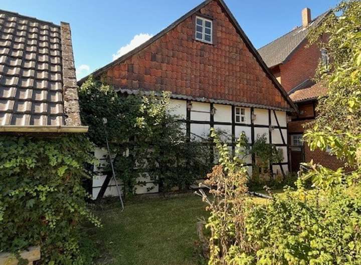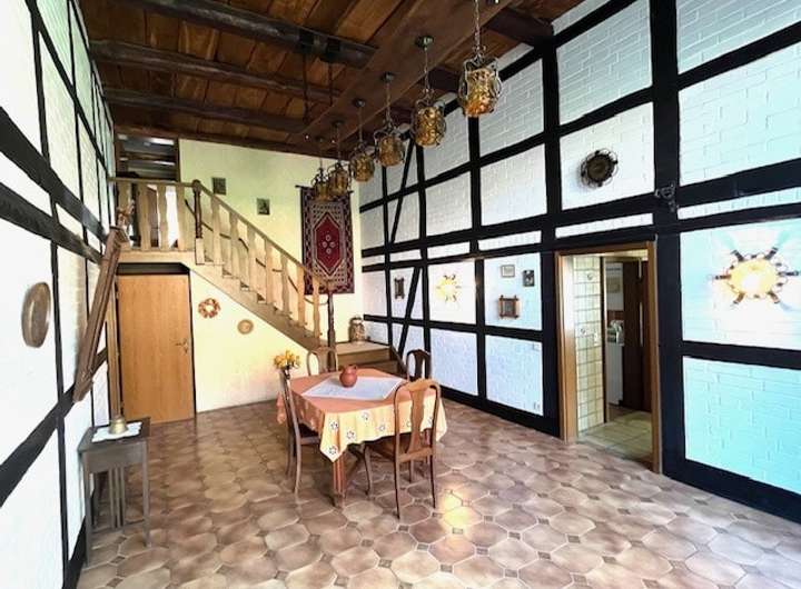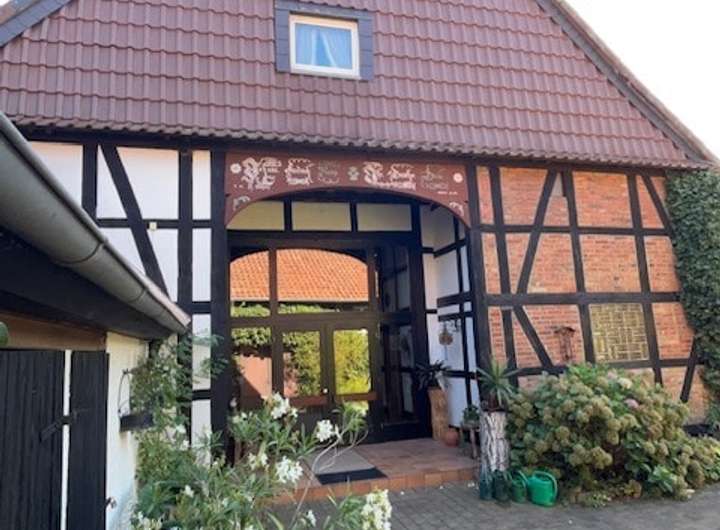 Dieses einzigartige denkmalgeschützte Fachwerkhaus wurde im Jahr 1850 als sogenanntes „Hallenhaus" erbaut. Der Stil ist typisch für die norddeutsche Tiefebene, wo er sich als das "niederdeutsches" Fachwerk etabliert hat. Diese Gebäude zeichnen sich durch einen mittigen, hallenartigen Raum (Diele) aus, der für Arbeit, Lagerung und Tierhaltung genutzt wurde. Es bietet Liebhabern historischer Architektur eine seltene Gelegenheit, ein Stück Geschichte zu erwerben. Die Gefache der Wetterseite zur Straße ausgerichtet sind verklinkert, die Gefache der übrigen Seiten sind weiß geputzt. Das Wohngebäude wurde im Jahr 1985 kernsaniert. Die Elektroanlage wurde auf dreiadrige Kabel erneuert, sämtliche Heizungs - und Wasserleitungen erneuert. Es wurden im ganzen Gebäude Kunststofffenster verbaut und die Dachdeckung ausgetauscht. Im Jahr 1993 wurde das Wohnhaus unter Denkmalschutz gestellt. Mit einer Wohnfläche von ca. 295 m² verteilt auf zwei Geschosse sowie einem Kellerraum, Scheune/Stall, zwei Garagen (Gesamtnutzfläche ca. 440 m²) und einem Hof und Terrasse eröffnet diese Immobilie vielfältige Nutzungsmöglichkeiten – von der liebevollen Restaurierung als Wohnhaus bis hin zur Kombination aus Wohnen und Arbeiten. Das Grundstück umfasst insgesamt ca. 1690 m² und bietet Platz für Garten, Ruhe und Gestaltungsideen. Ein seltenes Angebot für Menschen mit einem Faible für Geschichte und Raum für Ideen!