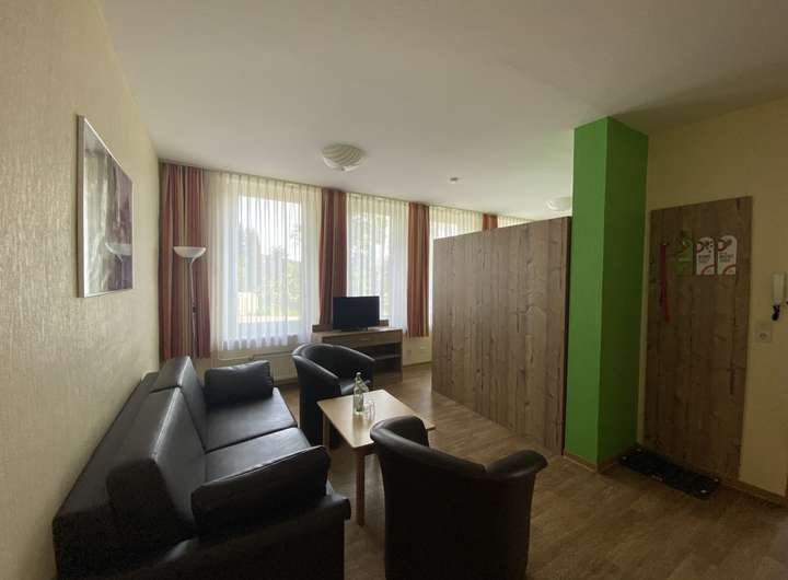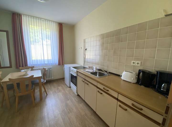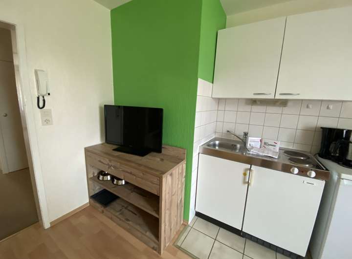 Das erste Appartement besteht aus einem Wohn-/Schlafraum, einer Kochnische und einem Bad mit WC, Waschbecken und einer Dusche. Das zweite Appartement verfügt über ein Schlafzimmer, eine Küche und ein Badezimmer mit WC, Waschbecken und Dusche. Das dritte Appartement auf dieser Etage verfügt über ein Schlafzimmer, ein Küche mit Essbereich und ein Bad mit WC, Waschbecken und Dusche.