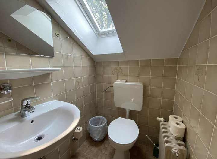 Das Dachgeschoß ist ausgebaut. Hier befindet sich eine Wohnung mit ca. 60 m² Wohnfläche. Die Wohnung bietet Ihnen ein großes Schafzimmer, eine Küche mit Essecke, ein WC, sowie ein Bad mit Waschbecken und Dusche. Zusätzlich befindet sich im DG ein weiterer Abstellraum, der auch ausgebaut werden könnte.