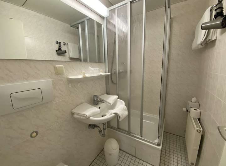 Im ersten Obergeschoß gibt es 3 Wohneinheiten und ein Wäschelager, welches früher als Personal-Appartement vermietet wurde. Außerdem gibt es einen geräumigen Flur.