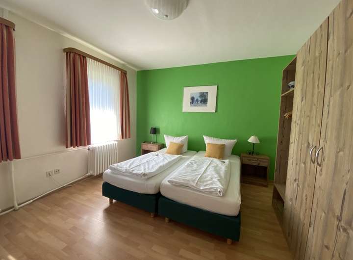 Die linke Wohnung hat zwei Schlafzimmer, ein geräumiges Wohnzimmer, eine Küche und ein Bad mit Dusche, WC und einem Waschbecken. Die rechte Wohnung hat einen großen Wohn-Schlafbereich, eine Küche ,einen Raum mit einer Badewanne und separat ein WC und ein Waschbecken. Ausserdem befindet sich im Erdgeschoss auch der Heizungsraum.