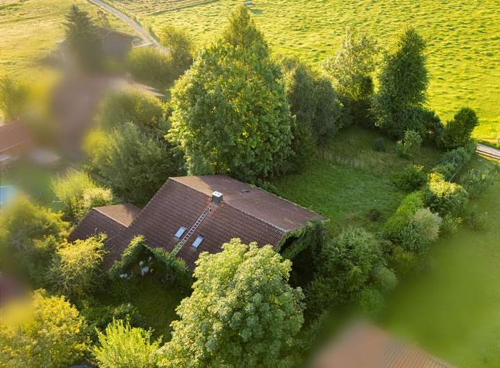 Das großzügige, nach Süden abfallende Grundstück mit der Flur Nr. 1472/2 ist am Rande der Bebauungslinie. Es ist rechteckig geschnitten und wird über eine ausschließlich Anliegern vorbehaltene Straße erreicht.