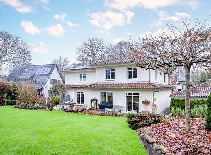 Dieses schöne Einfamilienhaus im toskanischen Stil befindet sich in einer ruhigen und zentralen Lage in der Schillerstraße 24a in Reinbek. Mit einer großzügigen Wohnfläche von ca. 285 m² zzgl. einer Nutzfläche von ca. 102 m² bietet es auf 6 Zimmern viel Platz für eine Familie.