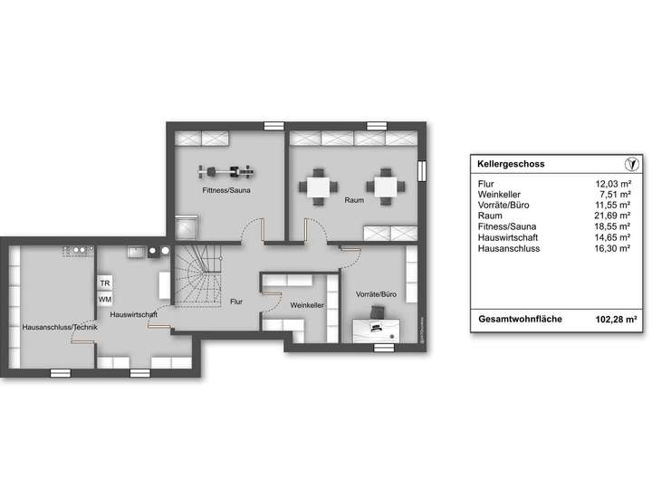 Das Haus ist umgeben von einem großen, gepflegten Garten mit angelegter Terrasse und einer schönen Bepflanzung – ein idealer Ort zum Entspannen oder für gesellige Zusammenkünfte. Der Keller dieses Hauses lässt keine Wünsche offen: Ein Weinkeller mit einem speziellen Weinklimagerät, ein Vorratsraum, ein Hauswirtschaftsraum/Wäscheraum und ein Raum für die gesamte Haustechnik sind hier untergebracht. Zwei große Räume bieten darüber hinaus viel Potenzial für individuelle Nutzungsmöglichkeiten, einschließlich eines Saunaanschlusses. Der Keller wurde mit einer weißen Wanne gebaut, die optimalen Schutz vor Wassereintritt bietet und ist komplett gefliest.