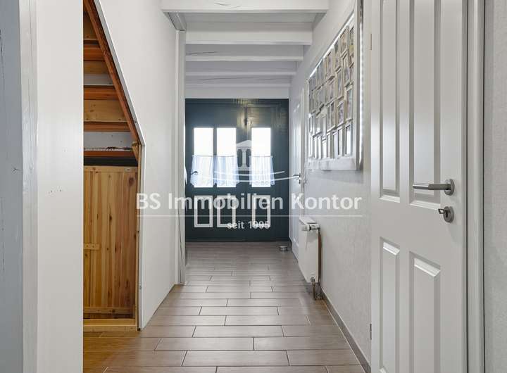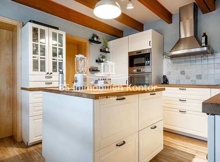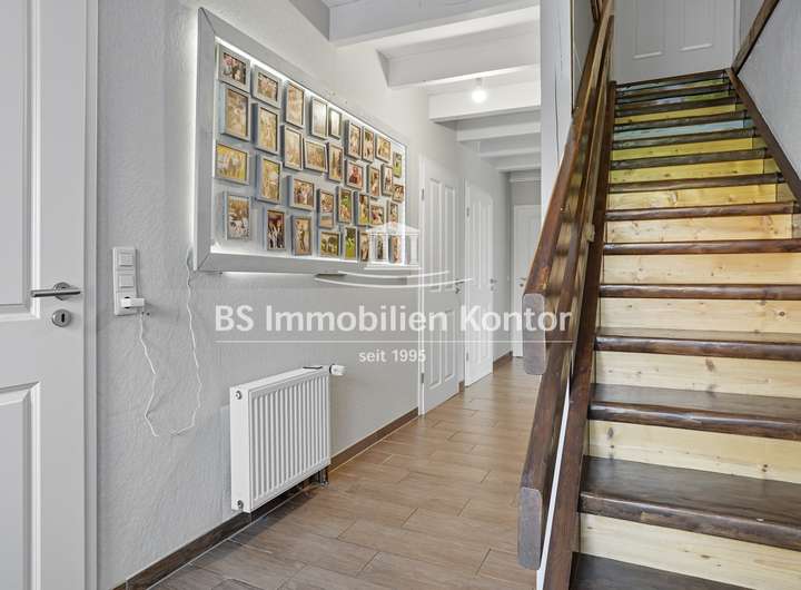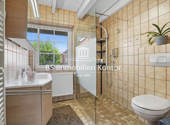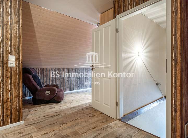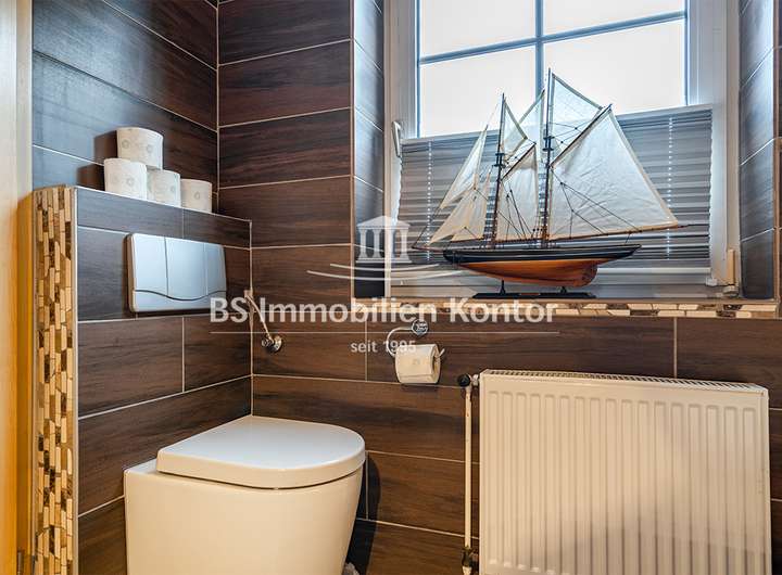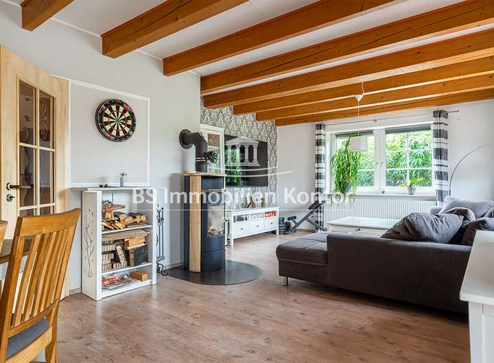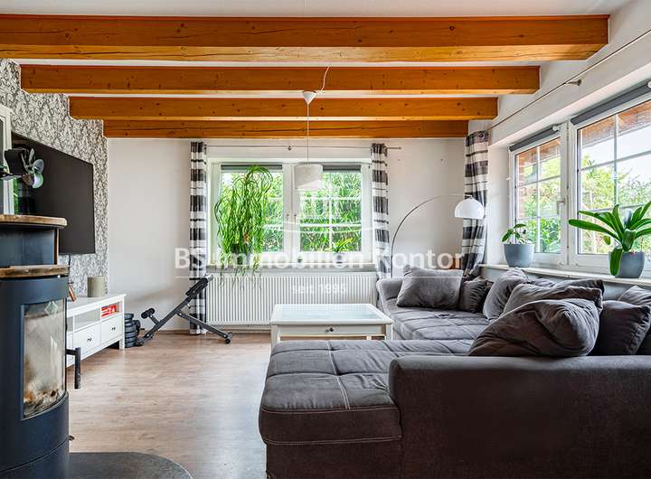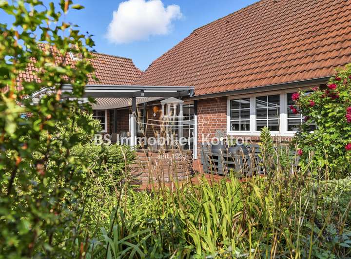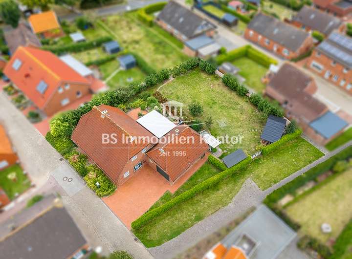 Wohnhighlight in Manslagt! Das großzügige Einfamilienhaus präsentiert sich im ruhigen Dorfkern von Manslagt und lässt keine Wünsche offen. Die Immobilie wurde 1985 in konventioneller Massivbauweise mit einem Krüppelwalmdach erbaut. Durch regelmäßige Erneuerung und Renovierungen verfügt die Immobilie über einen modernen Standard. Vom einladenden Eingangsbereich eröffnet sich Ihnen das Schlafzimmer, der großzügige und lichtdurchflutete Wohn- /Essbereich mit offener Balkenlage und die danebenliegende Küche mit angrenzender Speisekammer. Die Einbauküche mit Markengeräten lädt Sie zu ausgedehnten Kochabenden ein. Auch die Küche präsentiert sich mit offener Balkenlage, die für Behaglichkeit sorgt. Der Grundriss besticht durch seine gut durchdachte Raumaufteilung, die ein ebenerdiges Wohnen ermöglicht. Über eine formschöne Holztreppe gelangen Sie ins Obergeschoss. Hier erwarten Sie zwei große Schlafzimmer, ein kl. Zimmer und weitere Ausbauflächen . Ein Wohnhighlight ist auch die überdachte, nicht einsehbare, Terrasse. Genießen Sie hier oder im liebevoll gestalteten, ebenfalls nicht einsehbaren Garten, gemütliche Stunden. Mit einer Wohnfläche von über 200 qm bietet Ihnen diese Immobilie ausreichend Platz und Entfaltungsmöglichkeiten für die ganze Familie. Die Garage sowie eine Werkstatt (OG- Garage) lassen sich direkt vom Haus durch die Wäschekammer und einen weiteren Lagerraum betreten. Das Eigentumsgrundstück mit ca. 788 qm bietet Ihnen ausreichend Platz und Privatsphäre. Die Kunststofffenster sind mit einer Iso-/Sprossenverglasung ausgestattet. Beheizt wird die Immobilie mit einer Gas-Z.-Heizung (BJ: 2008). Eine Immobilie für Menschen, die Wohnqualität mit Lebensqualität verbinden und auf die Nähe zum beliebten Fischereidorf Greetsiel nicht verzichten möchten.