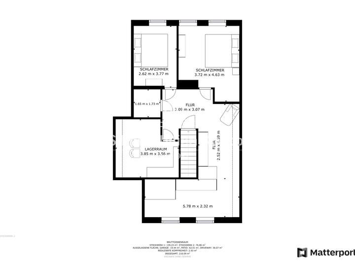 OG:Flur/Diele, 2 x Schlafzimmer, kl. Zimmer, weitere Ausbaureserve