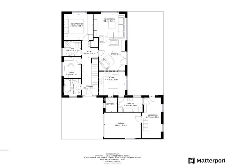 Gebäude: EG: Flur/Diele, Bad, Büro, Bad, Schlafzimmer, offener Wohn-/Essbereich, Küche, Speisekammer, HWR, Lagerraum, Garage