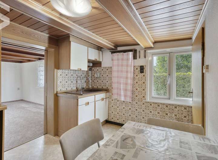 Das Haus, datiert auf ca. 1900, bietet authentischen Fachwerkcharme mit niedrigen Decken und einer offenen, charmant unregelmäßigen Raumaufteilung. Seit Jahrzehnten liebevoll in Schuss gehalten, bedarf es aktuell Renovierungen, um moderne Ansprüche harmonisch mit dem historischen Fachwerk zu vereinen.