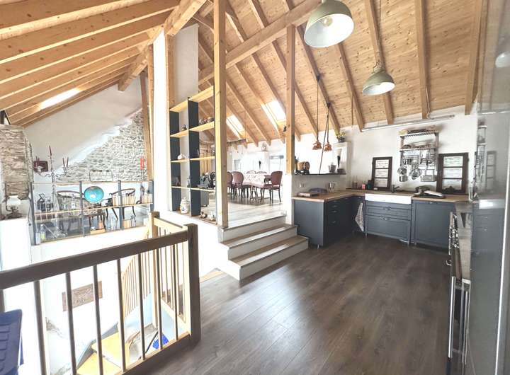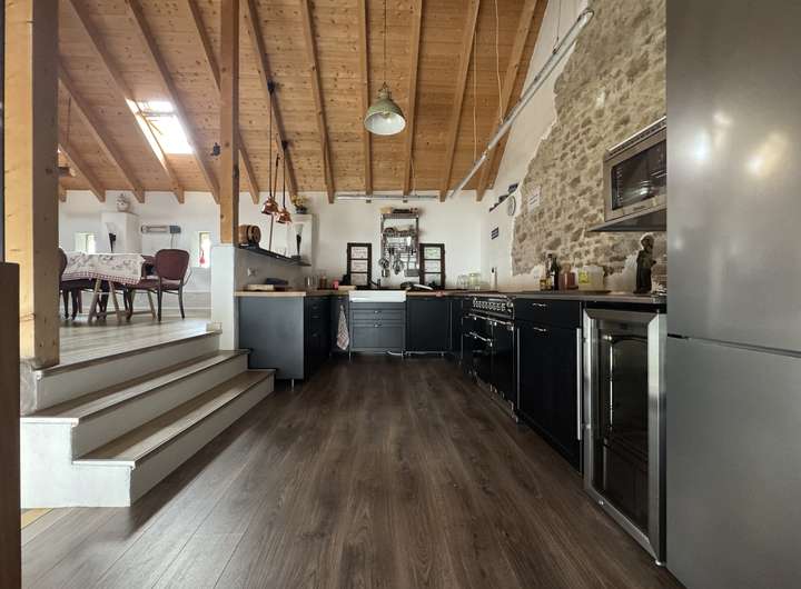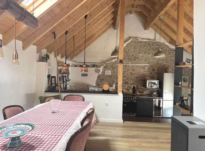 - Spektakuläre Eventscheune ca. 90 m² Wohn- und Nutzfläche zu Wohnzwecken ausgebaut, einzugsbereit - komplett erneuert 2017/2018 mit großem Essraum, großer, moderner offener Einbauküche, Bad und großem Zusatzraum